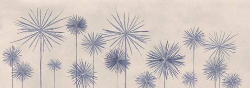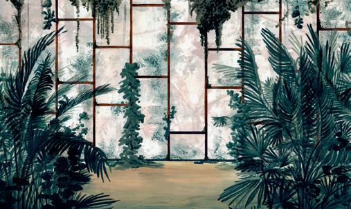 An orchard of exotic plants becomes a haven of peace with Frondes. With a careful color balance, this design will ll any room in