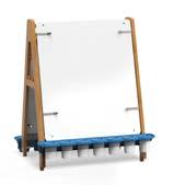 Bring ideas together! This new bamboo easel offers plenty of space for lessons. With a large 4’ x 3’ double-sided whiteboard positioned in vertical or horizontal and different height setups. Also included are 4 magnetic whiteboard slates with an 11” (28 cm) x 11” (28 cm) writing surface and brackets to attach the slates to the board for even more opportunities to brainstorm and create.