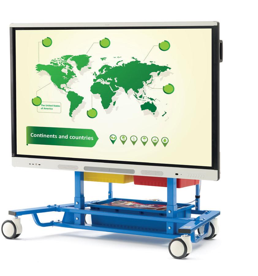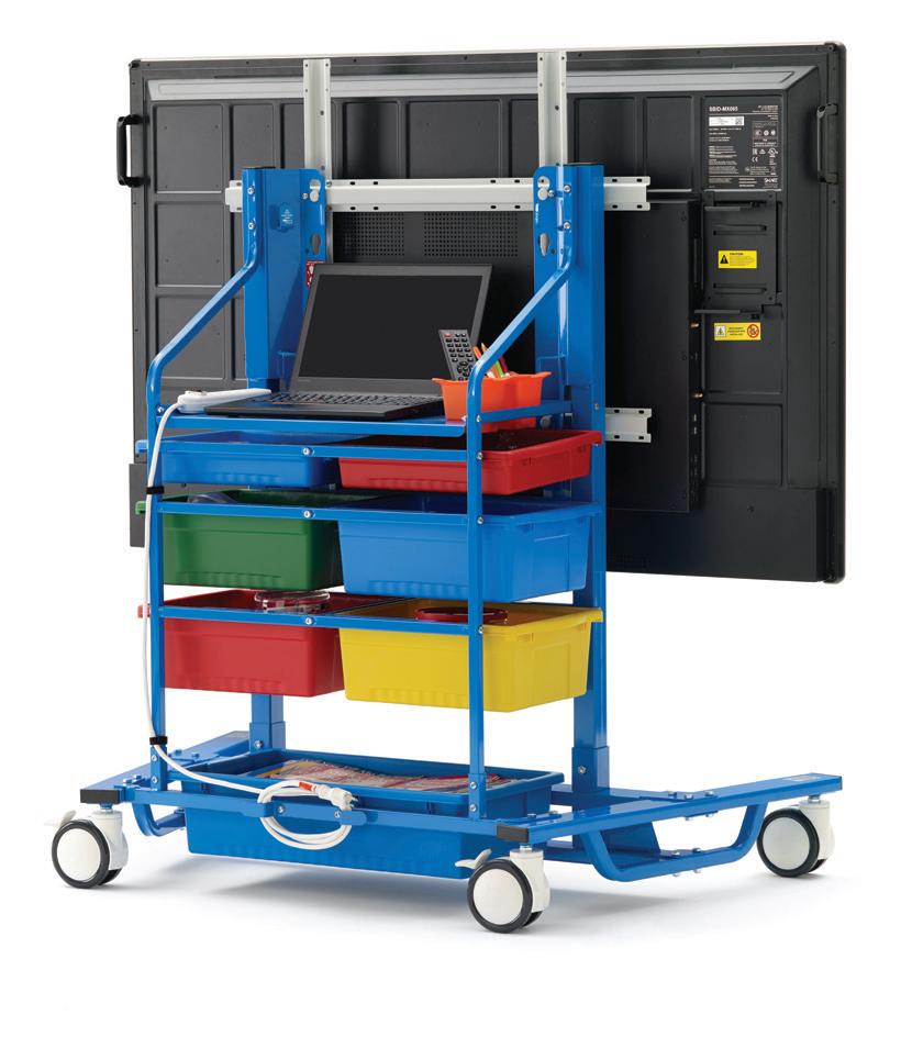 This easel hybrid was designed for primary classroom environments. To maximize its footprint, it combines a durable flat panel cart with convenient storage often found in traditional teaching easels for manipulatives, books and other materials. The flat panel is low to the ground to accommodate little learners and students with special needs accommodation.