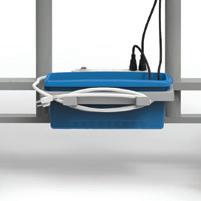 • Laptop tray with rounded edges and laptop safety strap. Can be mounted to the back, right or left side of the unit and can be stowed during transport (includes one laptop tray with rounded edges)