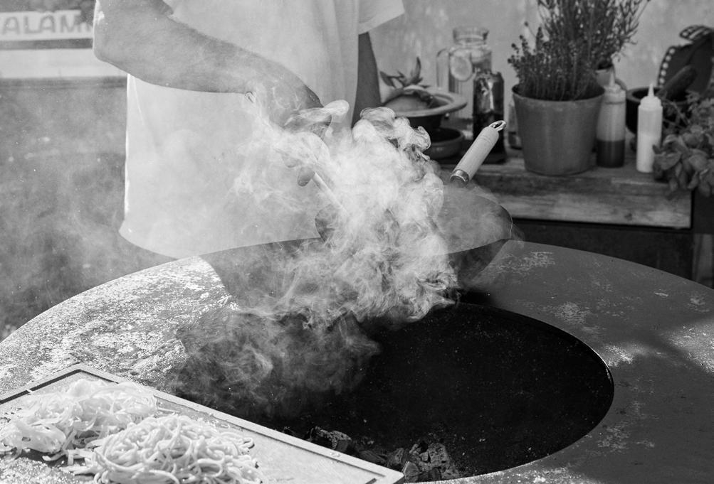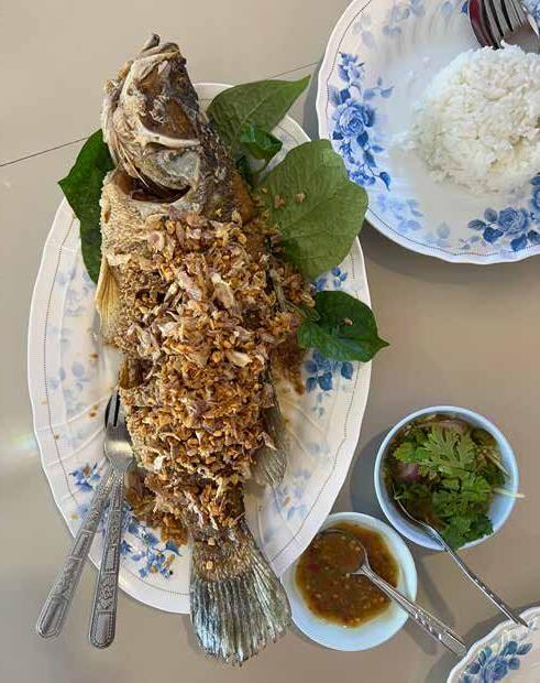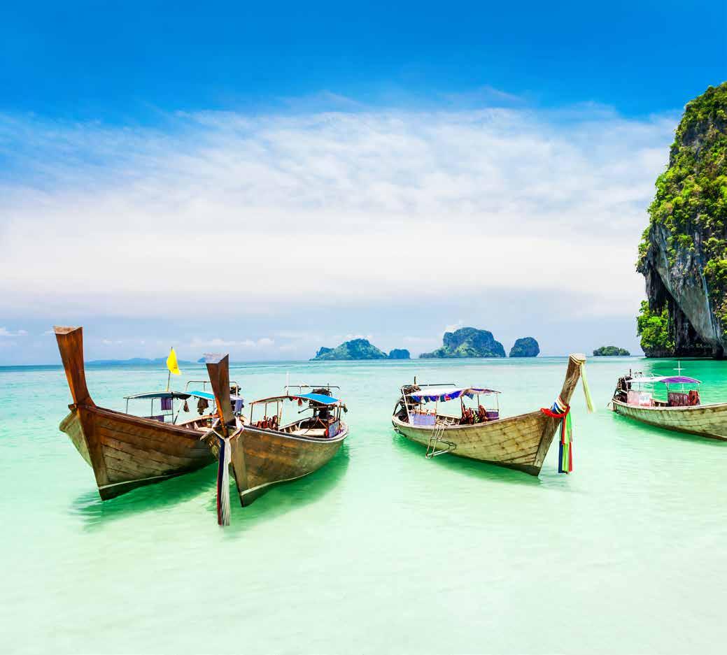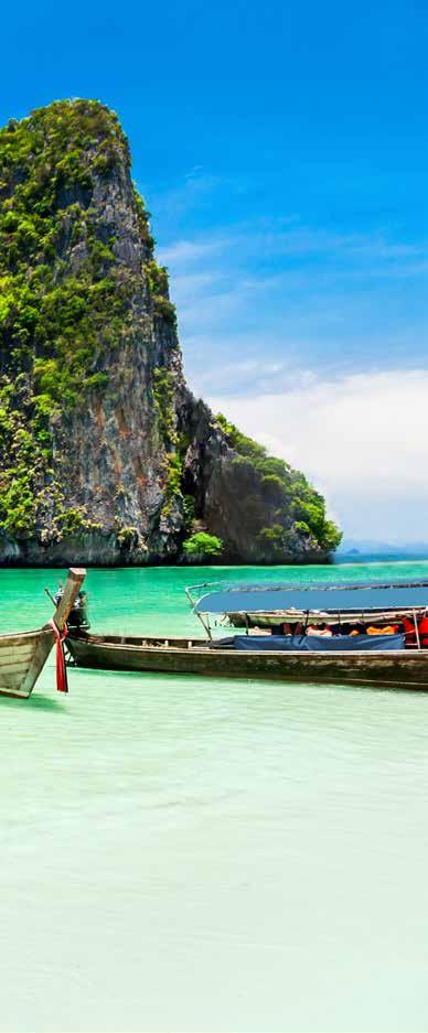 odlingarna. Mycket av maten serveras på de otaliga restaurangerna som ligger som ett pärlband längst den milsvida stranden precis nedanför Cay och Gunillas hus. En rejäl middag kan kosta så där 30 till 40 kronor, berättar Gunilla. Det blir många långa dagar vid stranden och utflykter till olika platser i Thailand. Ett favoritmål är en paradisö så där tio mil söder om byn. Där kan man snorkla i det kristallklara vattnet tillsammans med sköldpaddor och andra havsdjur.