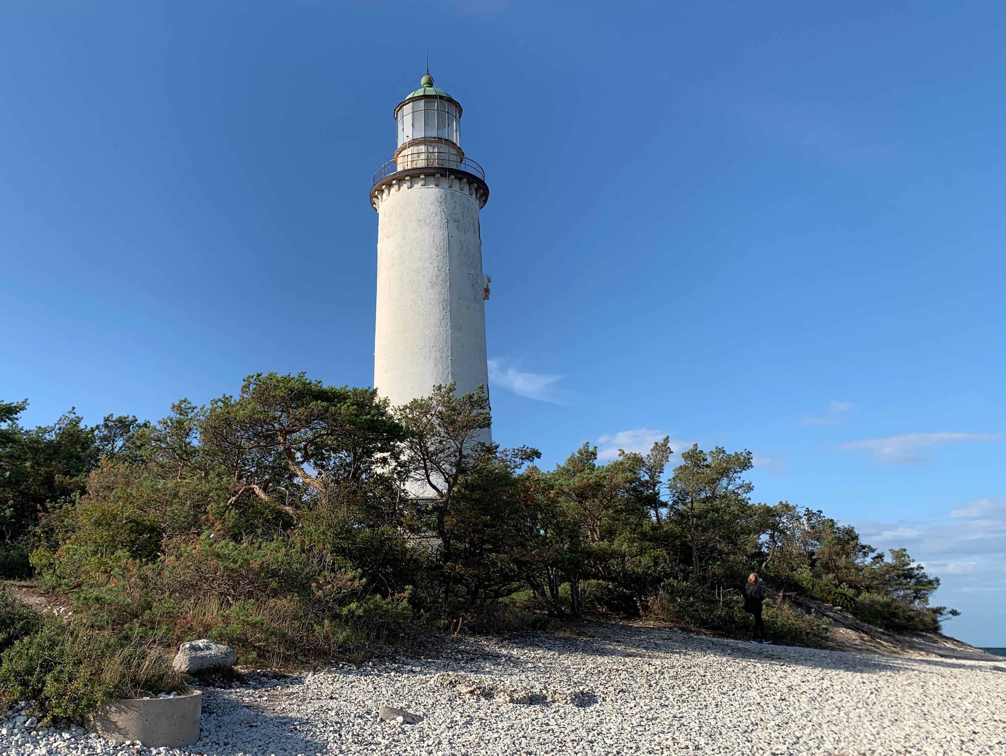 På den östligaste punkten, Holmudden, ligger Fårö fyrplats med en 30 meter hög fyr.