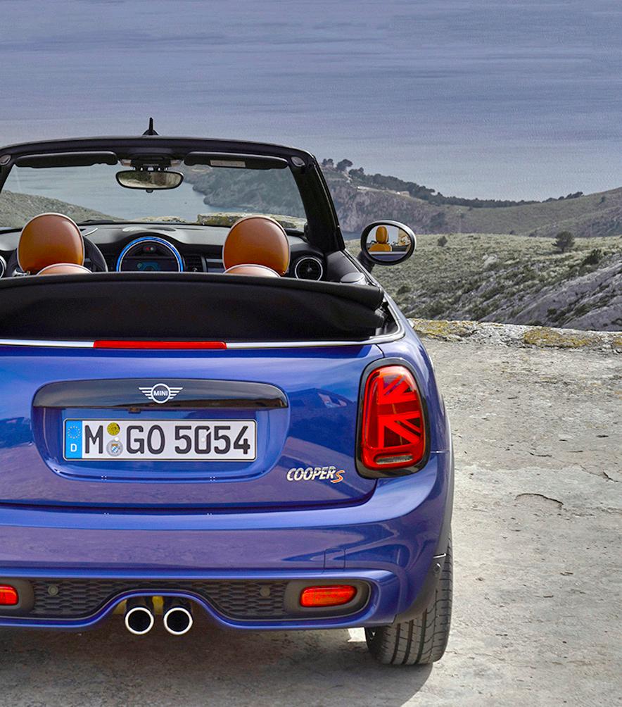 Cabrio talar sitt tydliga språk och här kombineras engelskt hantverk med tysk ingenjörskonst eftersom BMW äger varumärket. Vår knallblåa testkärra med vita racingstrips är lättare än någonsin att personifiera och man kan bland annat få fräcka detaljer som den brittiska flaggan vävd på suffletten eller sitt egengjorda