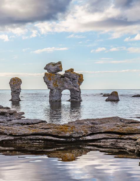 områden med hundratals raukar. På Fårö finns många fårgårdar i det vackra landskapet.