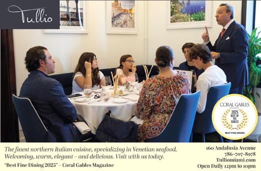 The brainchild of Lucio Zanon and his son Sebastiano – who previously launched Portosole – Tullio is Italian cuisine with a northern Venetian sensibility, a focus on seafood, and some very inventive pasta dishes. The fish is exceptionally fresh, the branzino flown from the waters of Italy, the shrimp from the waters of Argentina, and the lobster from the waters of Maine. Winner of Coral Gables Best Fine Dining 2024 & 2025 award, always a table-side show of impeccable hospitality. 2525 Ponce de Leon. 305.926.4208 $$$-$$$$