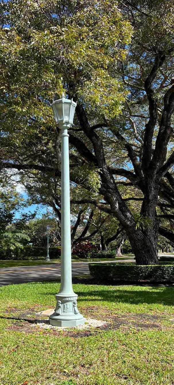 ABOVE: ONE OF THE NEWLY RESTORED "WHITE WAY" LIGHTS ON RIVIERA DRIVE