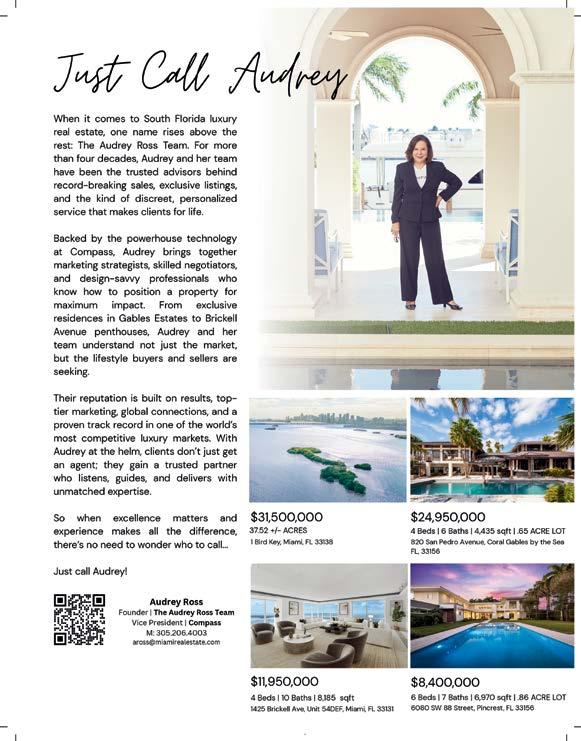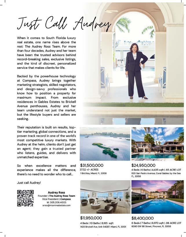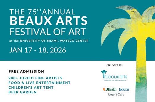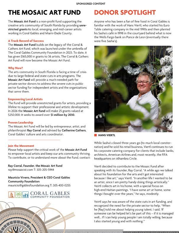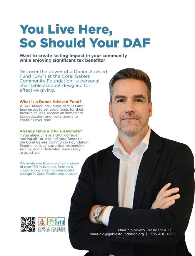 Coral Gables Magazine is published monthly by City Regional Media, 1200 Anastasia Ave. Suite 115, Coral Gables FL 33134. Telephone: (305) 995-0995. Copyright 2025 by City Regional Media. All rights reserved. Reproduction in whole or part of any text, photograph or illustration without prior written permission from the publisher is strictly prohibited. Send address changes to subscriptions@coralgablesmagazine.com. General mailbox email and letters to editor@ coralgablesmagazine.com.