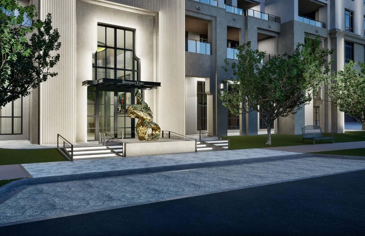 ALL WHO ENTER REGENCY PARC ARE GREETED BY POWER TOWER, 2019 BY LYNDA BENGLIS ONE OF THE MOST STORIED LIVING SCULPTORS IN THE UNITED STATES. IT IS BUT ONE OF MANY EXAMPLES OF HOW THIS LIFESTYLE COMPLEMENTS ARCHITECTURE THROUGH ART.