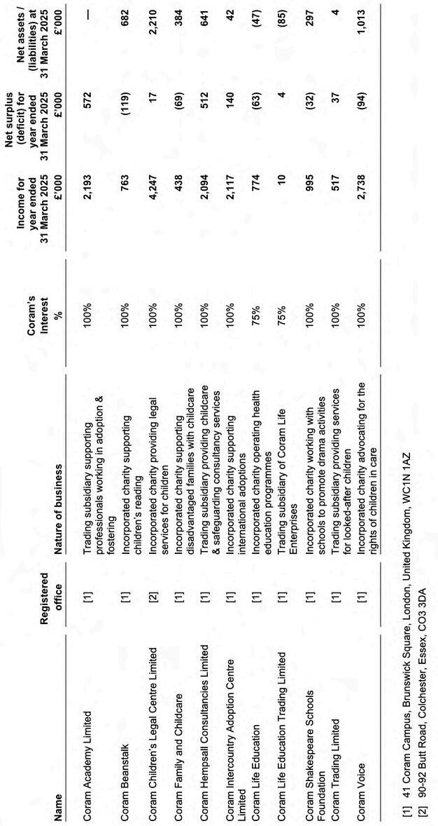 At 31 March 2025 Coram had the following total future commitments in respect of non-cancellable operatingleasesrelatingtolandandbuildings: