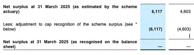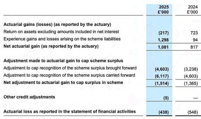 *As the net surplus in the scheme is deemed to be irrecoverable, recognition of the surplus on the balance sheethasbeenrestrictedto£nilbyadjustingtheactuarialgainfortheyear.