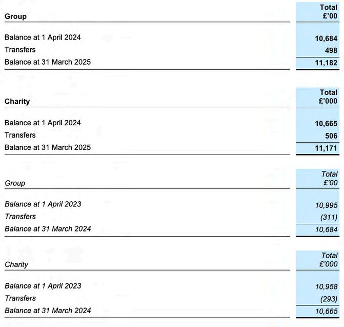 Thefundsofthegroupandcharityincludethefollowingbalanceofunrestrictedfundsdesignatedforfuture spending.