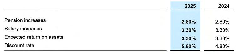 The full actuarial valuation carried out at 31 March 2022 has been updated to 31 March 2025 by a qualified independentactuary.Themajorassumptionsusedbytheactuarywere: