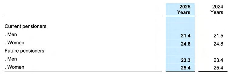Thepost-retirementlifeexpectancyassumptionsusedwereasfollows:
