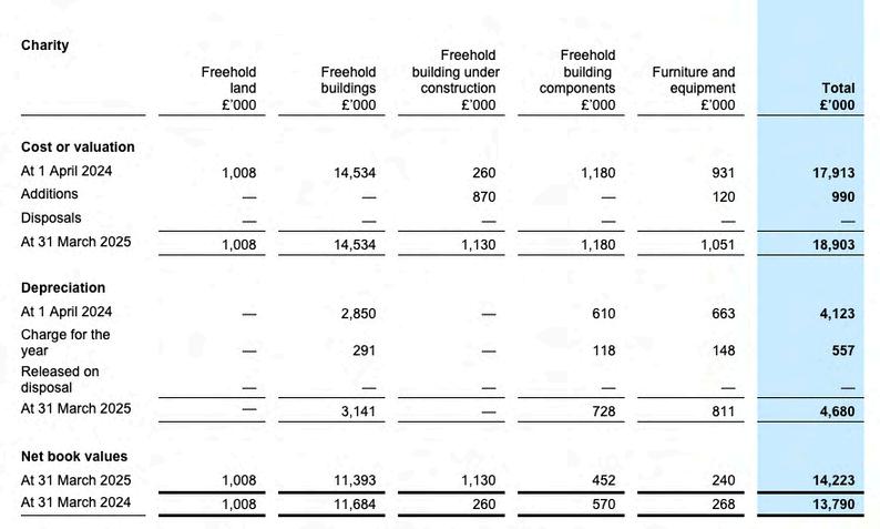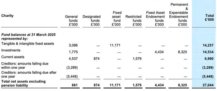 The fixed asset fund represents the net book value of the charity’s fixed assets that are not included within endowment or other designated funds.