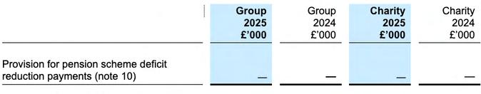 Where the scheme is estimated to be in a surplus position, under the reporting provisions of FRS 102, theemployerisonlyabletorecognisethesurplusas to the extent that it is able to recover the surplus either through reduced contributions in the future or through refunds from the plan. As the charity does not anticipate being able to recover the surplus in the aforementioned manner, the surplus is not recognised on the balance sheet, and a corresponding adjustment is made within other recognised gains and losses on the statement of financial activities to bring the net surplus position to£nilonthebalancesheet.