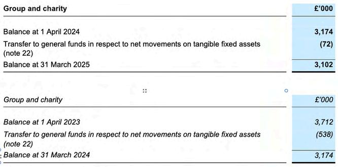 The tangible fixed asset fund comprises all monies invested in tangible and intangible fixed assets used by thecharitythatarenotpermanentendowmentorotherdesignatedfunds.