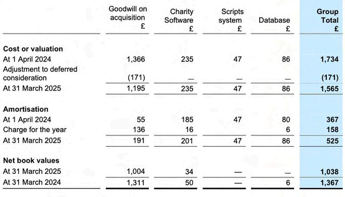 GoodwillonacquisitionisinrespectofthepurchaseofCoramHempsall’sConsultanciesLimited.100%ofthe share capital was acquired on 7 November 2023 for consideration of £1.817million (including deferred considerationwithanestimatedpresentvalueof£1.079million). Fairvalueadjustmentsweremadeinrespect of the net assets acquired on 7 November 2023. The goodwill recorded therefore reflects the difference between the consideration and the carrying values ascribed to the net assets acquired on 7 November 2023 perthecompletionstatementagreedbetweenthepartiestothetransaction.