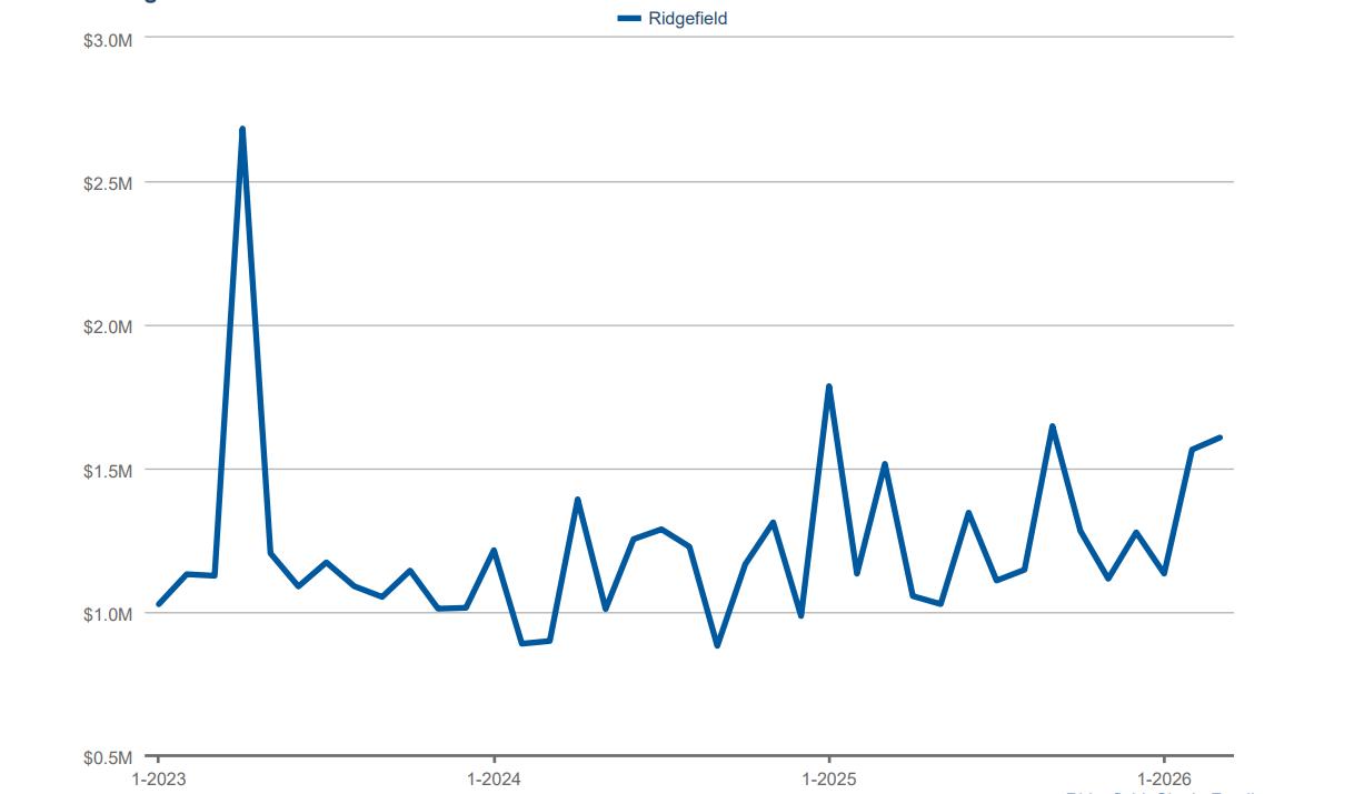 Ridgefield’s single-family market remains tight, with just 1.5 months of supply available at month end. New listings and inventory declined YoY but increased from February, signaling a modest uptick in supply heading into spring. Buyer activity strengthened, with 22 pending sales, up 15.8% YoY and 83.3% from February. Closed sales also rose to 15 transactions, a 25% increase YoY and up 66.7% month-over-month. Pricing remained strong, with the median sale price reaching $1.59M, up 27.6% YoY and 16.1% from February, reflecting continued competition for well-positioned homes.