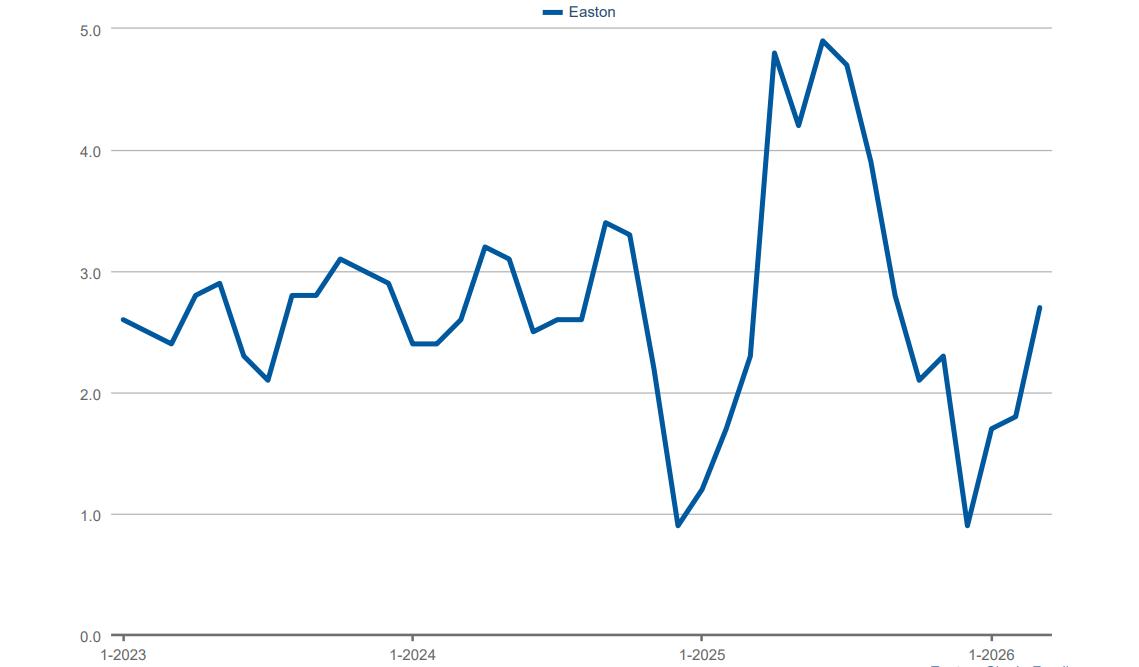 Easton’s single-family market saw a notable increase in supply, with 11 new listings, down 8.3% YoY but up 83.3% from February. Inventory rose to 20 homes for sale, up 33.3% YoY and 42.9% from last month offering buyers more options than in prior months. Pending sales totaled 5 transactions, down from last year but up 66.7% from February, signaling improving activity as new inventory comes online. Both the median and average sale price reached $1.27M, up 56.5% YoY and 26.3% from the prior month, reflecting strength at the higher end of the market. Closed sales remained limited with just 2 transactions, down 60% YoY and 50% from February.