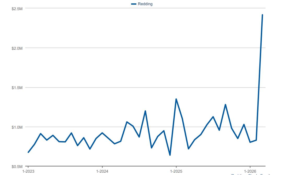 Redding saw a modest uptick in supply, with 7 new listings, up 40% from February but still down 46.2% YoY. Inventory rose slightly to 14 homes, though remains 39% below last year. Pending sales declined, down 66.7% YoY and 20% from the prior period, signaling softer demand. The median sale price jumped 236.2% YoY and 191.6% the prior month, driven by shifts in the mix of sales. At month end, there was just 1.6 months of supply, down 36% YoY, keeping Redding firmly in a low-inventory environment. As the market moves further into spring, sustained increases in inventory will be key to supporting more consistent transaction volume.