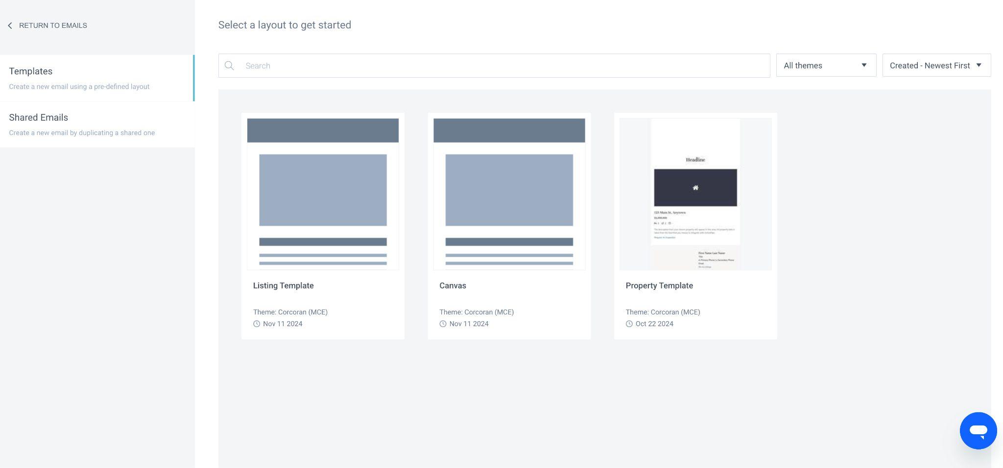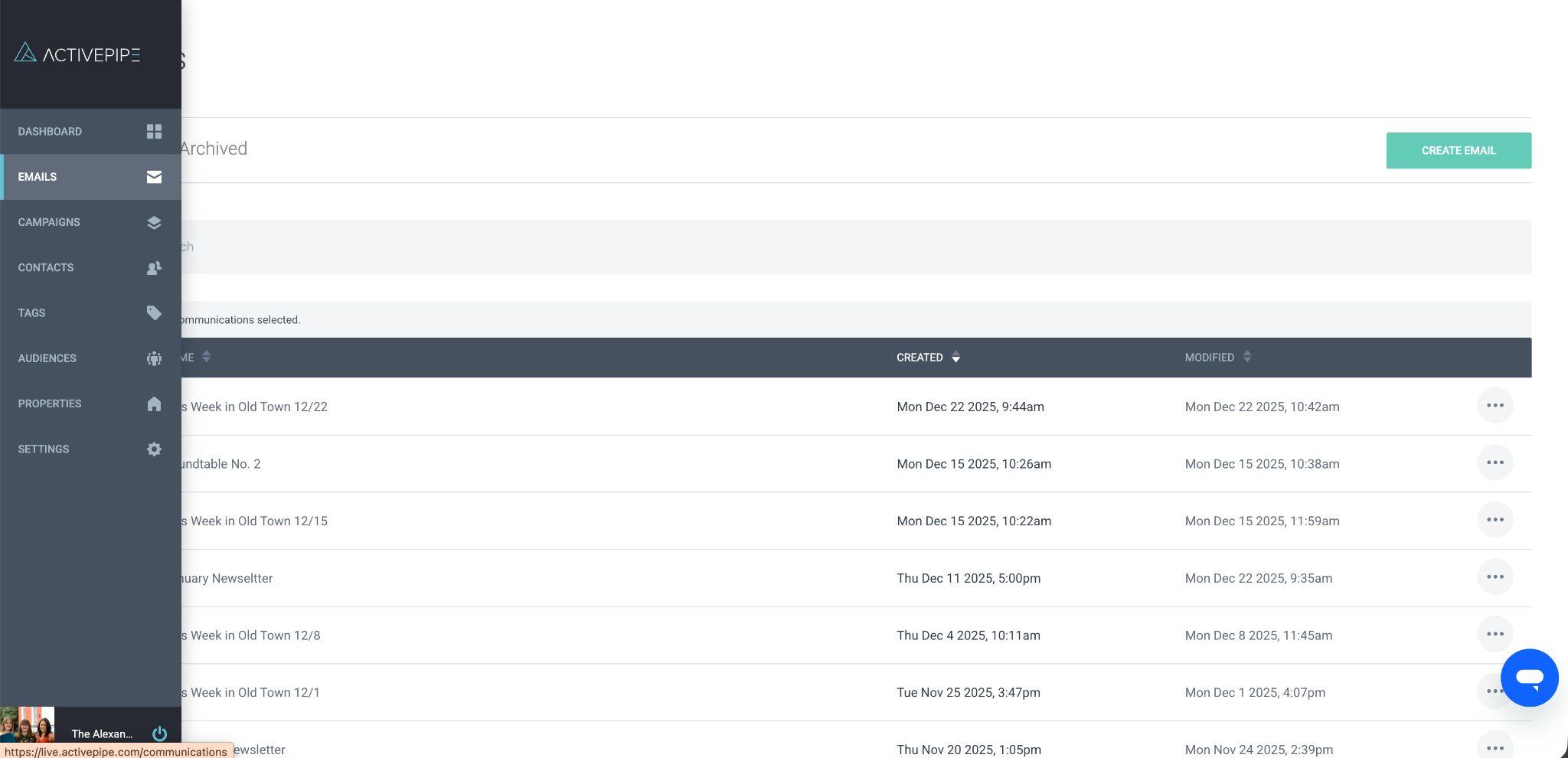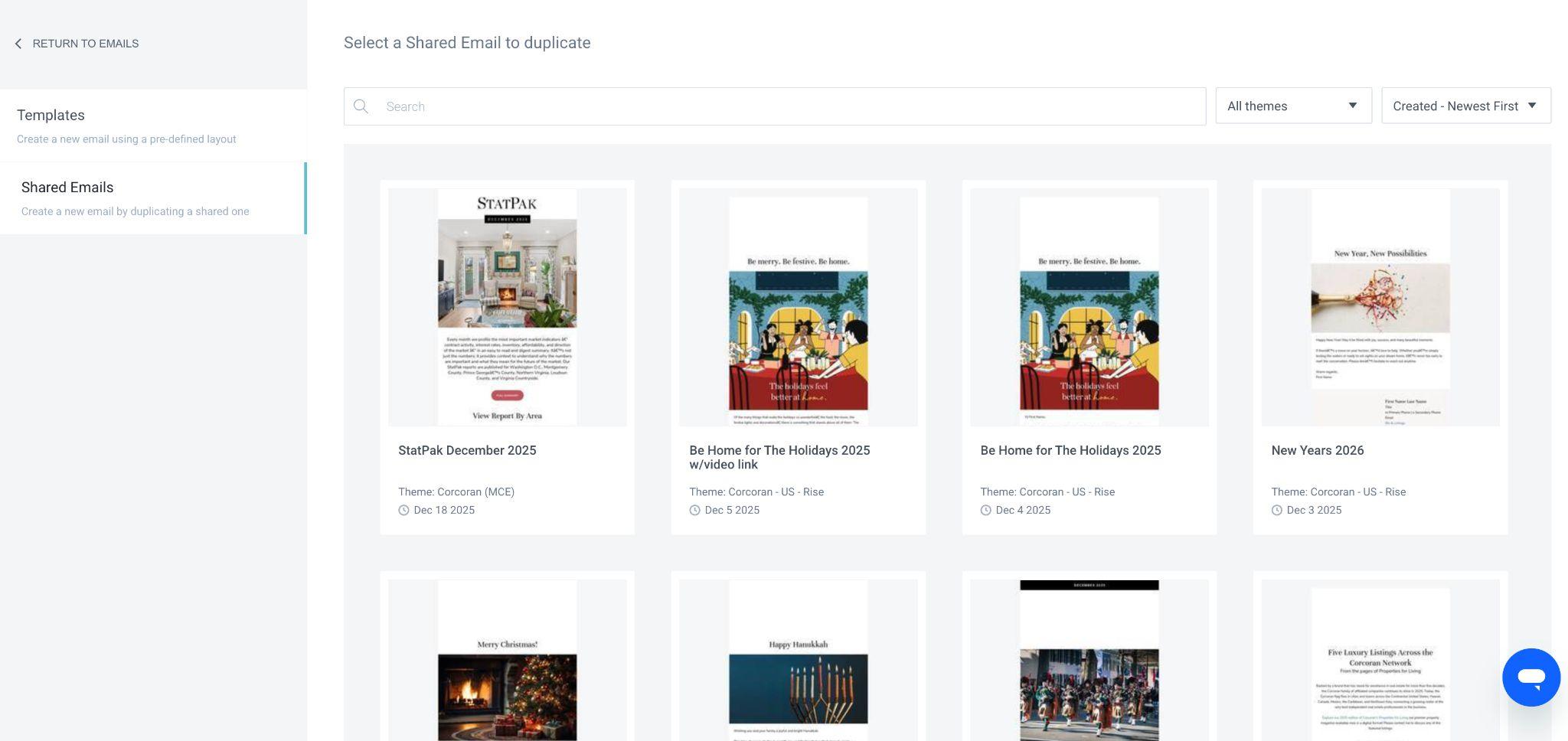 ○ Menu Bar | Emails | Create Email | Shared Emails