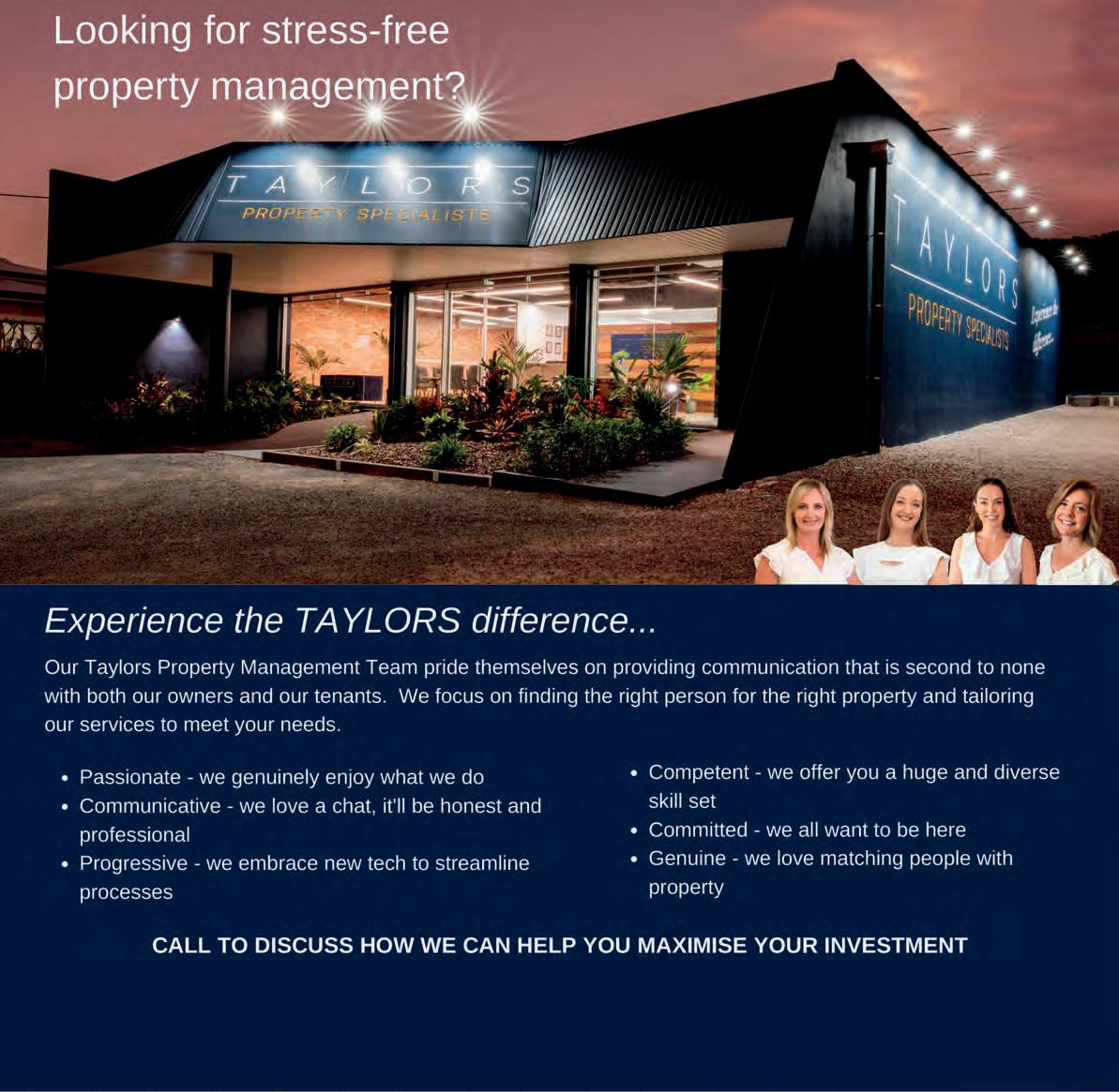 CONTACT: Brad Sobott 0411 236 507 brad@taylorspropertyspecialists.com.au