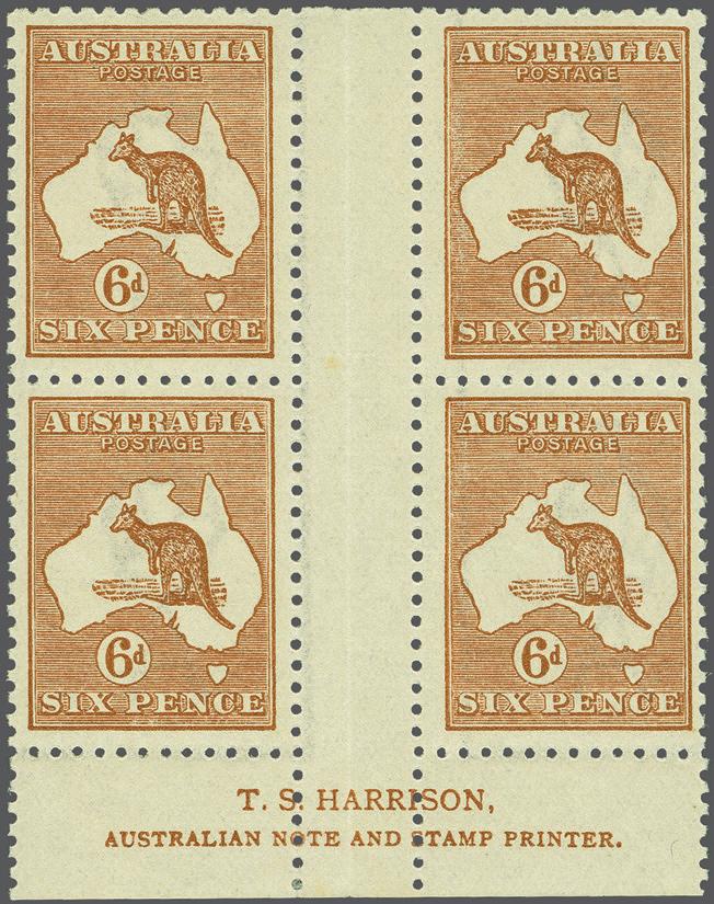 Harrison, Mullett and Ash imprint blocks of four (D107z+za+zb = $ 1'000+) and 4