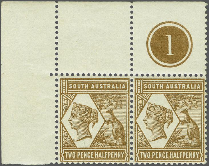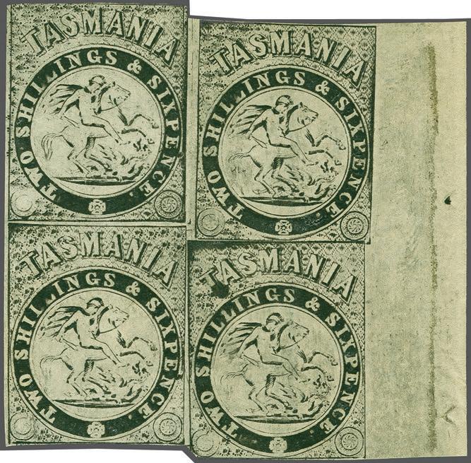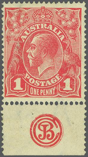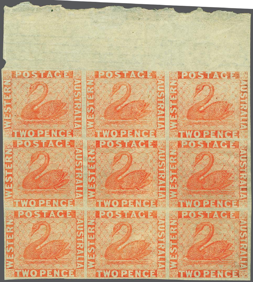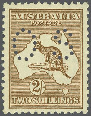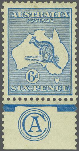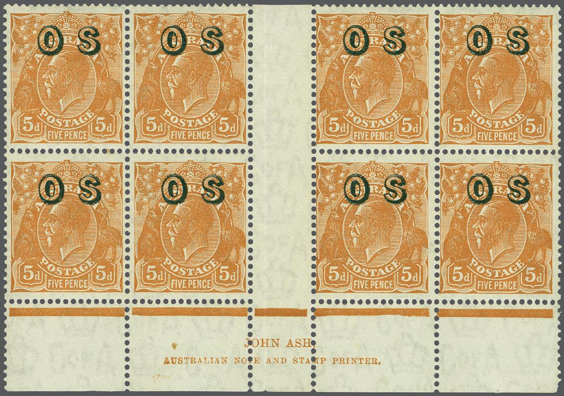 of six, marginal at right, punctured "OS", fresh and very fine, trivial wrinkle on unmounted og. BW 34b = $ 1'950. O116 4** 300 (€ 310) 30684 30685 30686 30687 30687 3068530686 30684 Australia DUBOIS (part III) · November