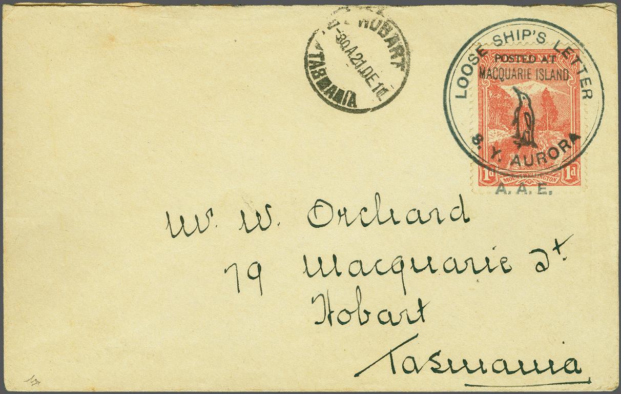 1833 (March 10): Cover endorsed 'On the Service of the Australian Agricl. Company' to Capt. Sir Edward Perry at Port Stephens, NSW struck with fine oval "♚ / GENERAL POST OFFICE / 14 AUG 14 / 1833 / SYDNEY" datestamp in brown, rated at enormous '5/10d.' to pay in manuscript (16 x 4d. inland rate + 6d. inwards Ship Letter rate - carried to Newcastle by the 'Sarah Jane' from Sydney. Reverse with 'Crown & Sheep' A.A.C. red wax seal. A fine and most attractive cover.