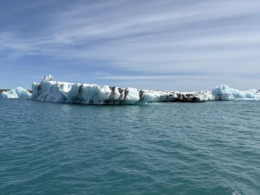We also got to visit Glacier Lagoon, which is in the southeastern part of Iceland, adjacent to Diamond Beach. We were able to go on a “truck-boat” cruise to see the glaciers even closer. I learned that the black parts are from the volcanic ash trapped inside them. We were also able to see some seals on our journey, which was awesome!