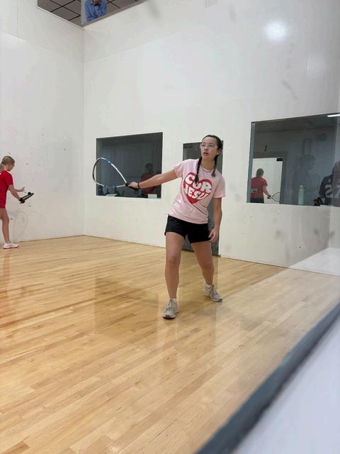 Maria Witt, class of 2016, has been playing for 13 years and started at CJA, continuing her raquetball career in college at Truman State. She came back to coach because she “wanted to give back and get involved” and “racquetball was something to do” during COVID. She started coaching the same season as Libby!