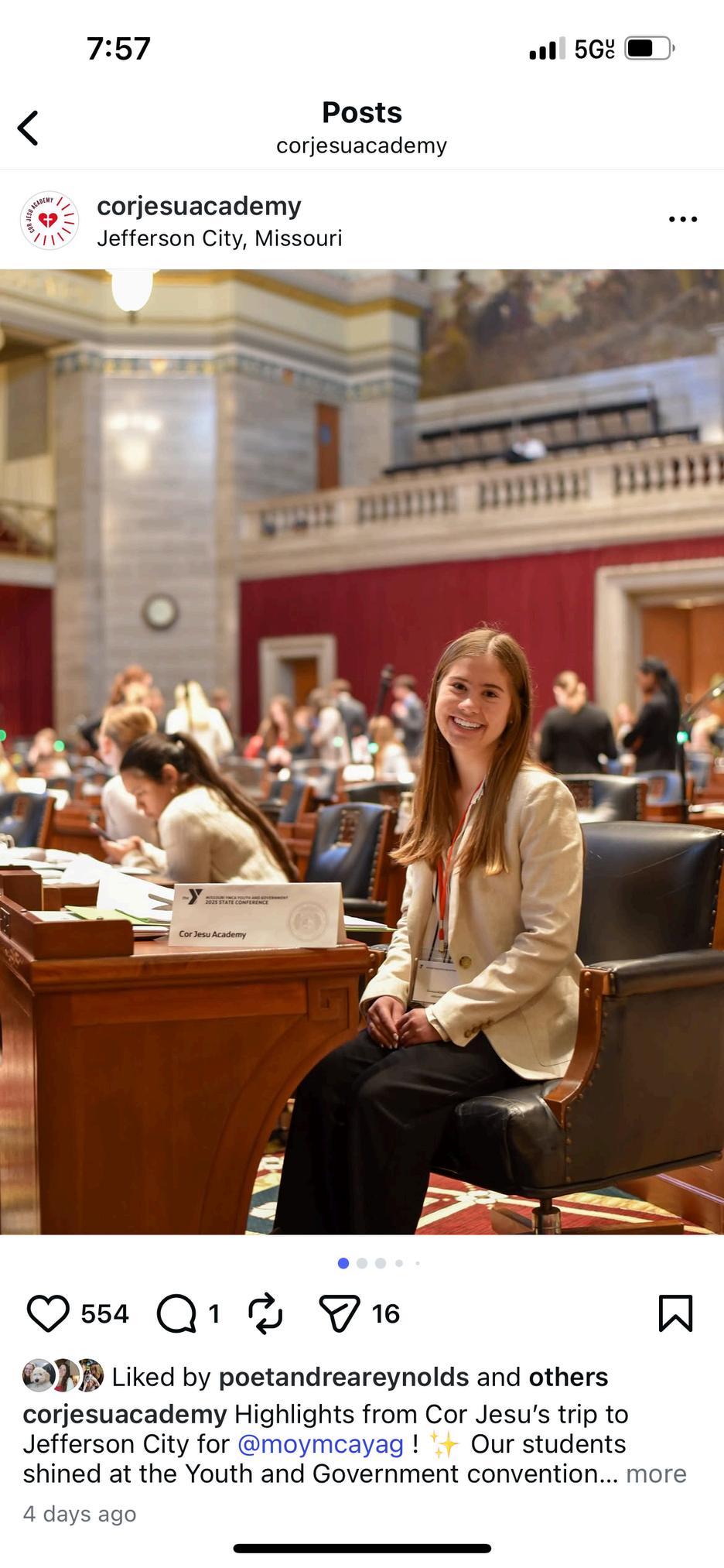 If you have any interest in law or want just a fun weekend to explore different occupations, look into Cor Jesu’s very own Youth and Government and experience the legendary weekend in Jefferson City for yourself!