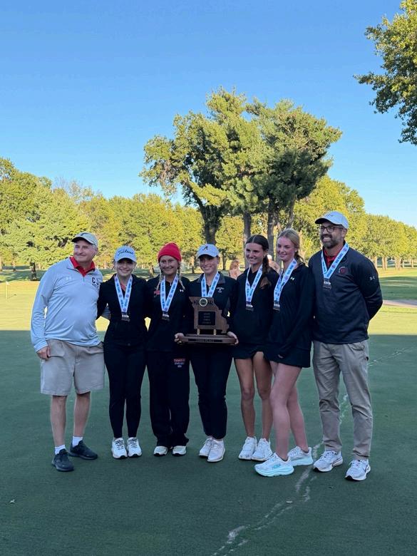 The golf team, led by senior captains Nora Cooke, Rachel Karcher, Ali Geminn, and Eloise Riley, placed 3 at state. Nora Cooke placed 15 individually, earning an all-state recognition. The team also won districts, with notable performances from Molly McDonald ‘27 and Melanie Kalinowski ‘28. A big congratulations to coaches Mark Tueth and Tim Huether for this outstanding season. rd th