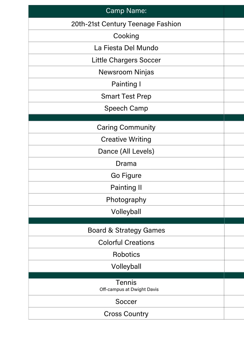 Want to see camps organized by date and time?