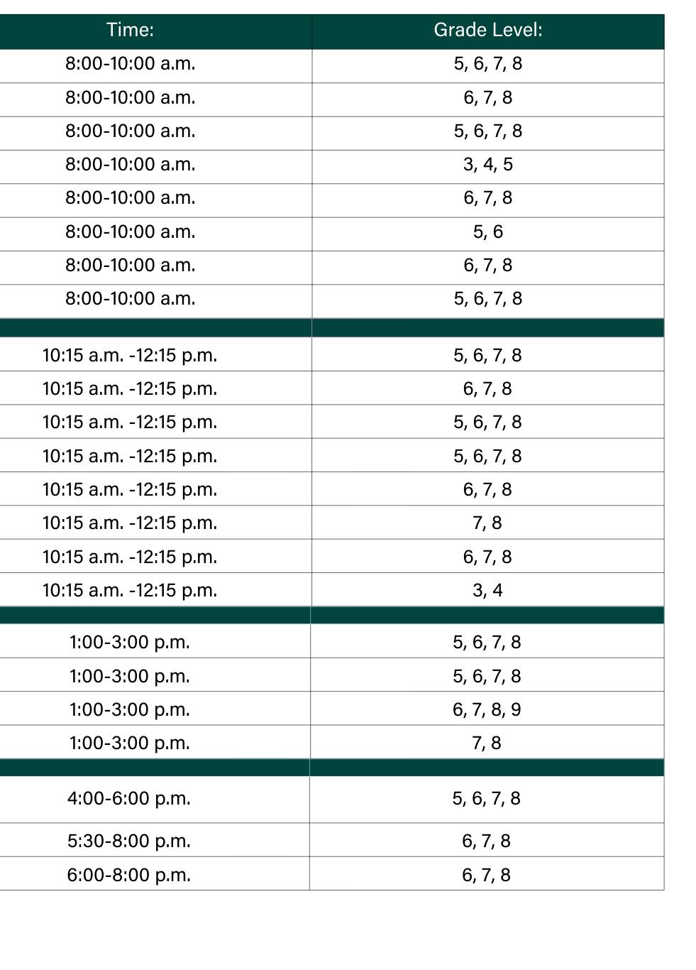 Early Bird pricing is available for registrations received by May 15, 2026. Registrations submitted after May 15,2026 will be subject to a $25 per camp price increase. ALL campers will be asked to complete a media release form and a medical and emergency release form. Each enrichment camp will have a minimum of six students, maximum of 25, unless otherwise noted. Early registration is recommended, as class sizes are limited. Parents will receive a confirmation e-mail after May 15, 2026. In the event that a class is cancelled due to insufficient enrollment, parents will be notified.