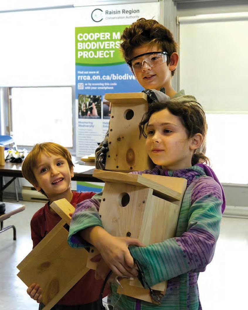 ly surrounded the quiet collection of taxi dermy specimens roosting at the Raisin Region Conservation Authority’s (RRCA) Cooper Marsh Visitors Centre in South Glengarry, as nineteen eager carpenters of all ages busily built boxes to hopefully host nest ing pairs of tree swallows and their young at various RRCA conservation sites.