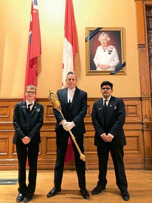 During a typical day in the program, Ryan has to arrive at Queen’s Park at approximately 8:00 a.m., dress in uniform and then prepare the Legislative Chamber for the morning’s debates. As the day progresses, the Ryan is involved in a number of activities including: participating in the opening procession line, delivering messages and water to MPPs in the Chamber, taking classes in legislative process and mathematics, and meeting with key legislative players such as party leaders, the Speaker of the House and our local MPP Nolan Quinn.