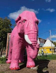 As we headed toward Missouri, Barbara and I made two more stops to photograph a couple of roadside legends. In Livingston, Ill. we snapped a shot of the Pink Elephant. The original Pink Elephant dates to the early 1950s, when it was erected as a bold attentiongetter to a local trading post and souvenir shop. Time and weather eventually took their toll, but in 2015 a new Pink