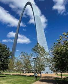 The route’s eastern gateway is the Gateway Arch, rising 630 feet above the Mississippi River. About 30 years ago, I rode to the top of the arch in a tiny elevator that operates more like a tram as it navigates the arch’s angles. You can see out through narrow windows at the top, and then it’s time to descend. But on this visit, on a beautiful fall afternoon, we were content to just photograph the structure from the ground.