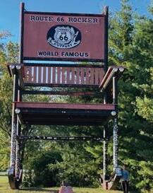 As we headed west, Missouri’s roadside personality began to take center stage. One of the most delightfully unexpected sights is the World’s Largest Rocking Chair in Fanning. This giant wooden rocking chair towers over travelers and practically demands a photo stop. It’s pure Route 66 whimsy – oversized, absurd and completely irresistible – the type of attraction that just makes you smile.