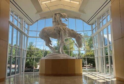 “End of the Trail” is a powerful sculpture at the National Cowboy & Western Heritage Museum. It depicts a weary Native American warrior slumped over his exhausted horse, symbolizing the hardship and displacement faced by Native Americans.