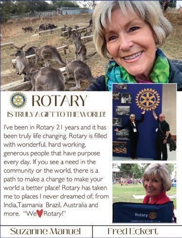 Now, I may be biased because this club has been a major part of my life since I was born, but we have a saying here that I truly believe. We call ourselves the greatest (Rotary) club in the UNIVERSE, and we are overjoyed to show you why. I hope you enjoy this issue and find some inspiration. And, hey, if you’re inspired enough to join us in our efforts, we would be thrilled to see new faces at our meetings, events and projects!