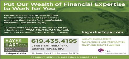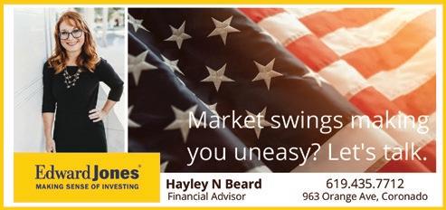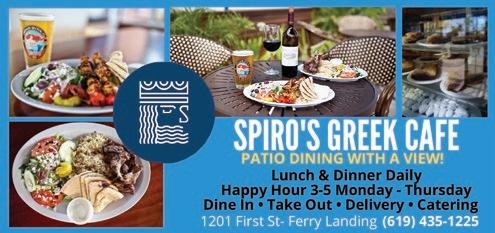 Join us for CORONADO | 1333 ORANGE AVE | 619.435.4166 C ect with us @ BRIGANTINE.COM CORONADO | 1351 ORANGE AVE | 619.437.4237 C ect with us @ MIGUELS-COCINA.COM GLASSES OF WELL DRINKS & MORE! Available : MONDAY 3PM - CLOSE • TUESDAY - FRIDAY & SUNDAY 3 - 6PM RED/WHITE WINE • It’s All $ 6 ! P16 | Coronado Magazine