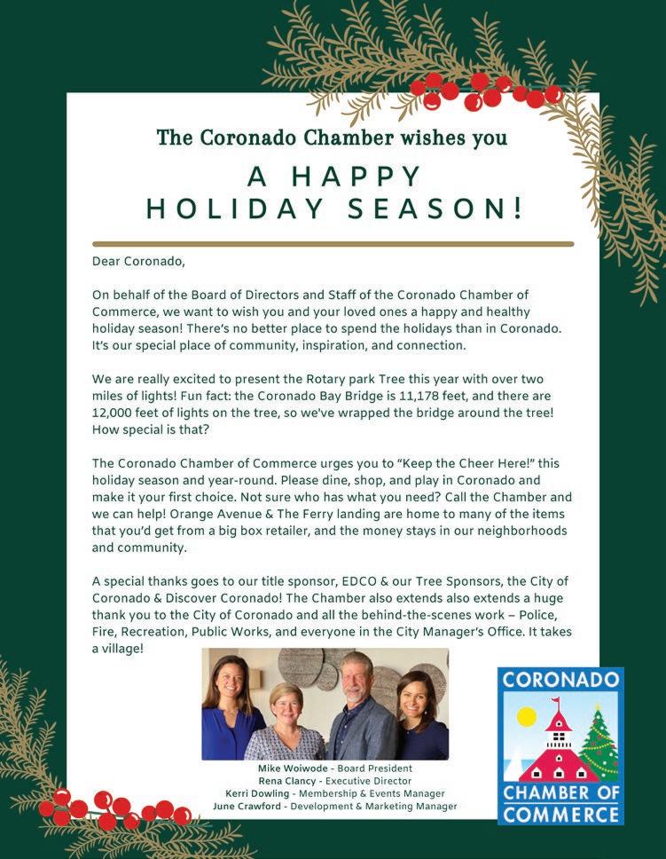 As we close out another year in Coronado, I’d like to take this opportunity to thank the community for its continued support of what we do here in the Coronado Magazine (and the Coronado Eagle & Journal) … I am always humbled by the kind words, amazing suggestions and positive involvement we receive every day!