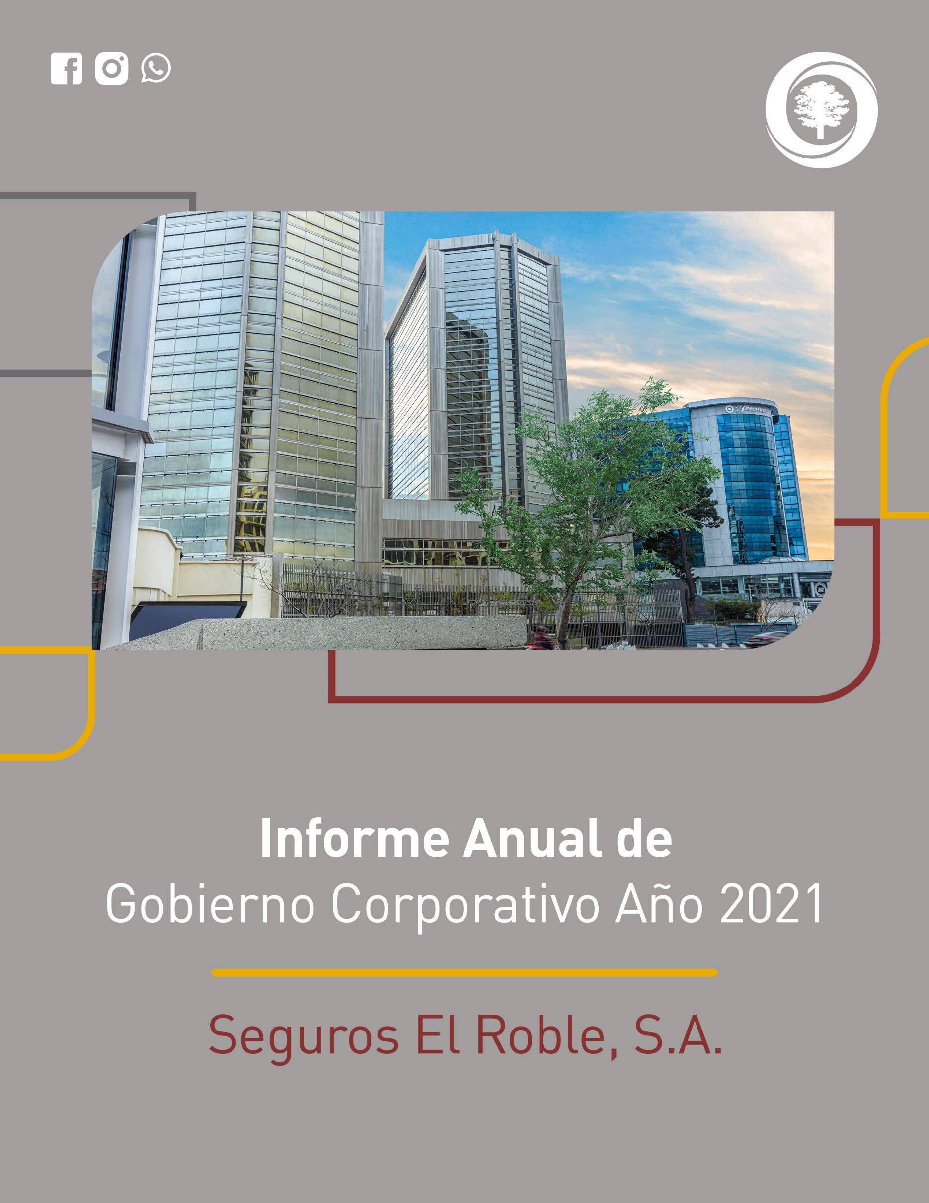 Con base en lo anterior, se presenta el Informe Anual de Gobierno Corporativo de Seguros El Roble, S.A., en lo sucesivo, la “Entidad”.