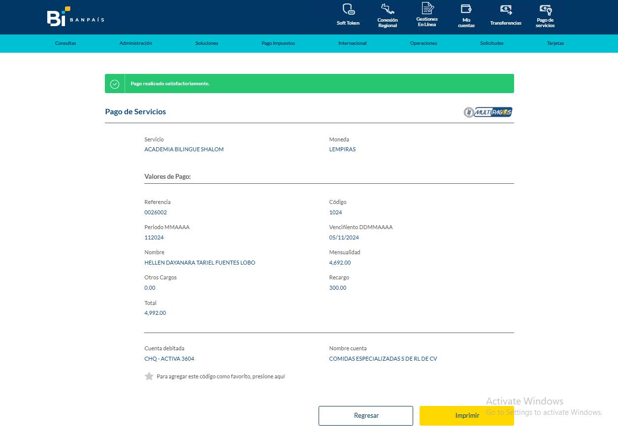 Desde el menú Operaciones, haz clic en Consulta de pagos.