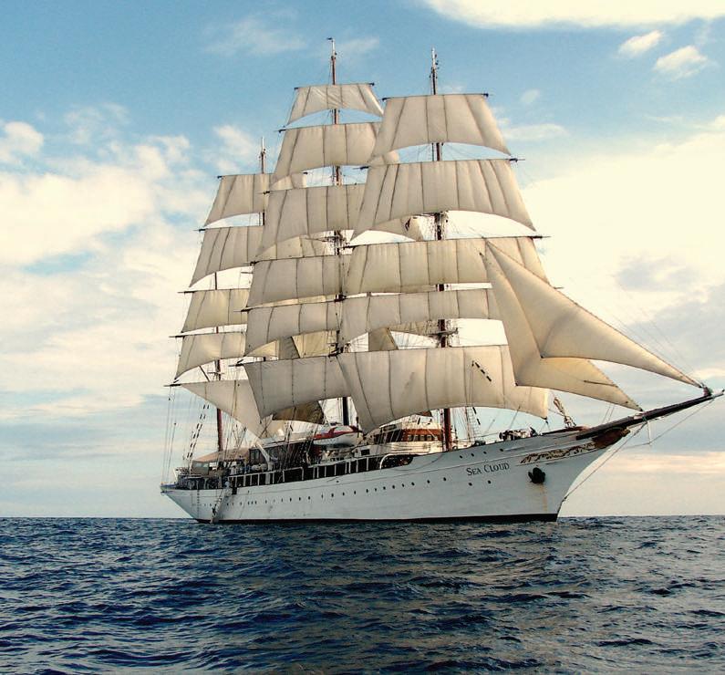 Su historia es tan fascinante como su diseño y se remonta a 1929 con el nombre de Hussar. El magnate E. F. Hutton se lo regaló a la empresaria y esposa Marjorie Merriwather, quien, luego del divorcio, se lo queda y le cambia el nombre a Sea Cloud. Con nuevo nombre y nuevo matrimonio de su dueña, la embarcación surca las aguas como embajada y misión comercial oficiosa de Estados Unidos por el mundo. Allá por los años treinta y cuarenta tuvo de huéspedes