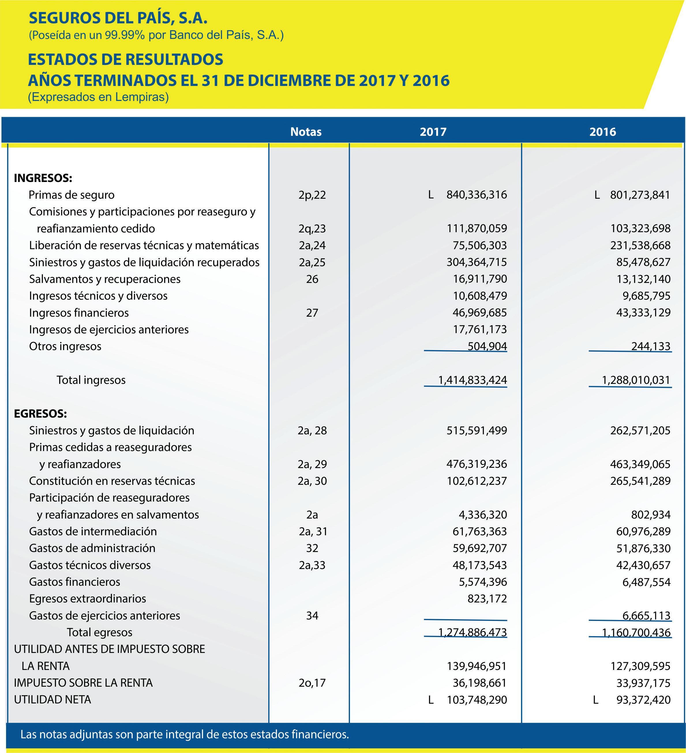Hemos auditado los estados financieros que se acompañan de Seguros del País, S.A. (la “Compañía”), los cuales comprenden los estados de situación financiera al 31 de diciembre de 2017 y 2016, y los estados de resultado integral, de cambios en el patrimonio y de flujos de efectivo, para los años que terminaron en esas fechas, así como el resumen de las políticas contables significativas y otras notas explicativas.
