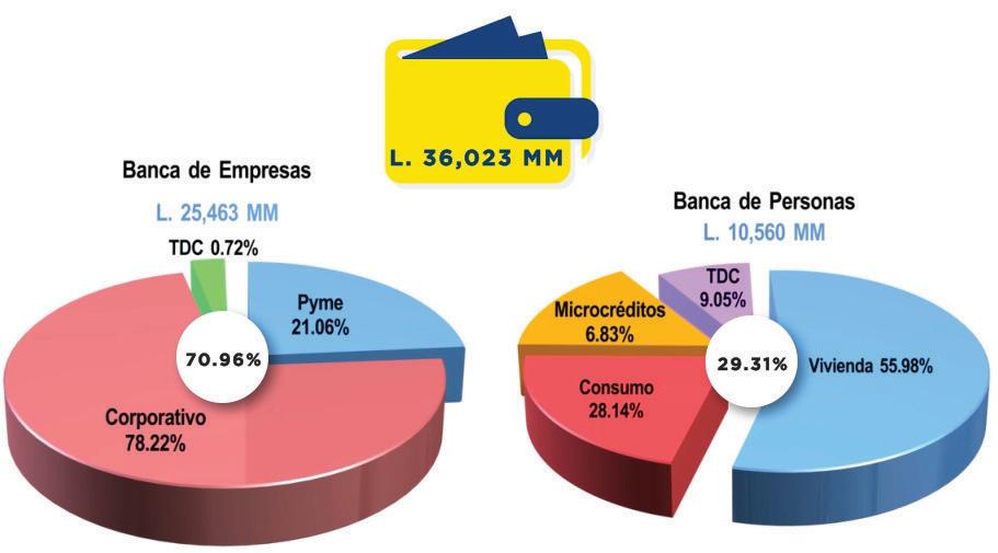 Nos posicionamos en quinto lugar en el ranking del sistema en activos totales y en el cuarto lugar en cartera de créditos. En el ejercicio concluido el 31 de diciembre de 2017 registramos activos totales netos por 49,113 millones de Lempiras y nuestra cartera crediticia cerró en 34,268 millones de Lempiras, lo cual representa un crecimientodel14.77%conrespectoalaño anterior.