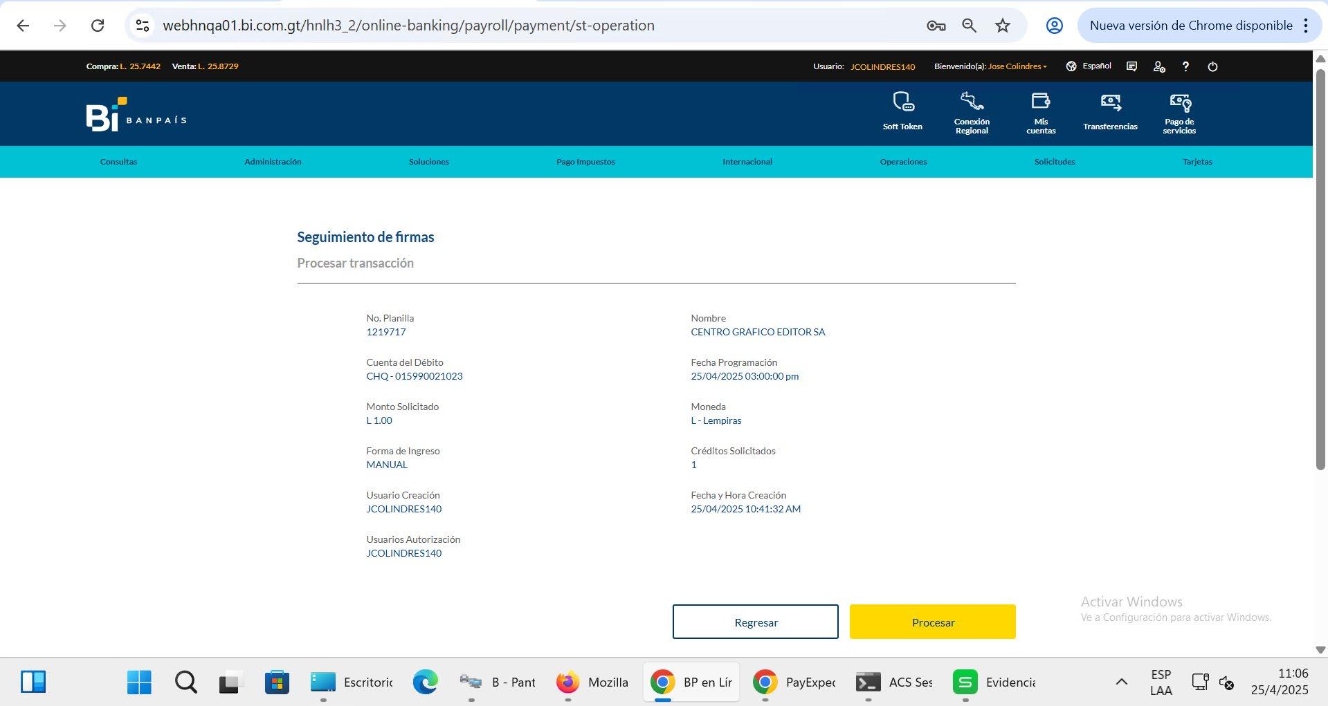 En la pantalla verás toda la información de la planilla, haz clic en Procesar.